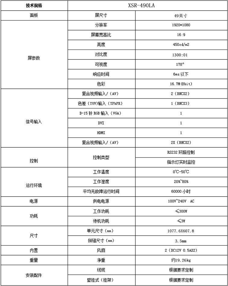 新視銳49寸超窄邊3.5mm拼縫液晶拼接單元產(chǎn)品參數(shù):