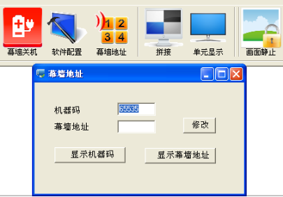 例如以2X2拼接幕為列從左到右數(shù)如圖11中的機器碼15569顯示的是第四塊屏幕,那么就把15569填寫到機器碼框中.幕墻地址框中就改成4,點擊修改,然后關掉完成再進行下一個修改.