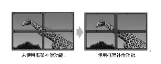 拼接后,拼接單元與拼接單元之間有一個物理的邊縫,可以通過勾選“消除邊框”,并設置相應值來實現(xiàn)圖像的連貫性(注:邊框的值根據(jù)屏的物理邊框來設置。例:LTI460HA03的邊框是10MM,在此處設置的值就應該為10)。去掉邊框后的效果見圖5