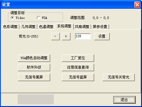 VAG顏色自動調整:當在VGA狀態(tài)時抓到的值不正確,顏色顯示不正常時,點擊該按鈕重新抓取,可重復多次點擊(注:在拼接單元單屏顯示時使用)。