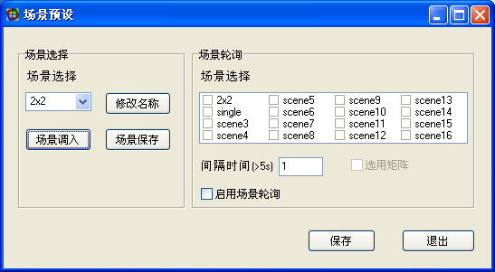 支持16種場景模式保存,可以更改模式名稱。選擇要保存的模式,設置完成后點擊“保存模式”。“調用模式”可以調用用戶保存過的模式、跟據(jù)有需求用戶的還可以啟用場景輪詢模式